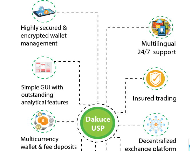 Dakuce exchange will list various coins that can be inter-exchanged and traded. Though in the beginning the platform may support Bitcoin and other leading cryptos but in the long run the exchange will offer many currencies of international recognition.